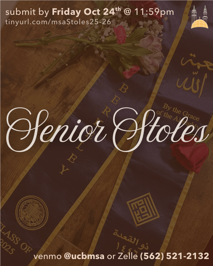 Asalaamu’ alaikum and welcome back to the Cal Muslim Student Association’s October newsletter! Keep scrolling to discover our events, reminders, resources, and reflections to keep your imaan strong especially during midterm season!